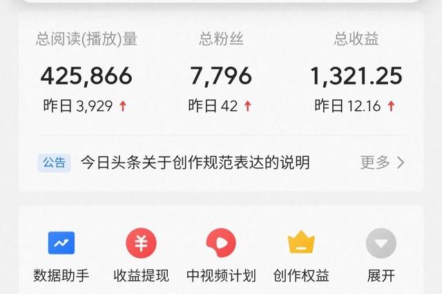 文章更新的收益绝大部分或者几乎都是视频的收益,我的视频是中视频3方同步的:抖音、西瓜、头条。