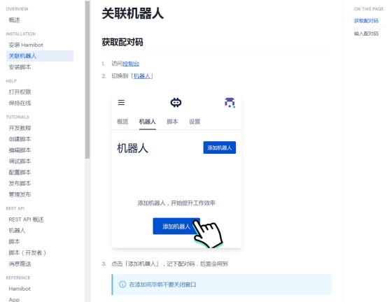话不多说直接上手,首先,打开界面我们看到非常干净简洁,初次使用需要前往控制台配对,可以点击使用指南,注册登录后再首页选择添加机器人,然后选择添加机器人,会出现一串配对码,输入到软件中,就配对成功!