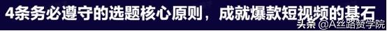 首先第一个原则就是必须要符合生态规则,就是你的选题一定要符合抖音里面的依据。